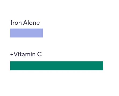 Iron - Blood supply increases by almost 50% during pregnancy to support the growing baby, making iron critical in this stage. 40% of women are iron-deficient in the third trimester, so we combine iron, which is notoriously poorly absorbed, with Vitamin C, to enhance iron absorption 2-3 fold.