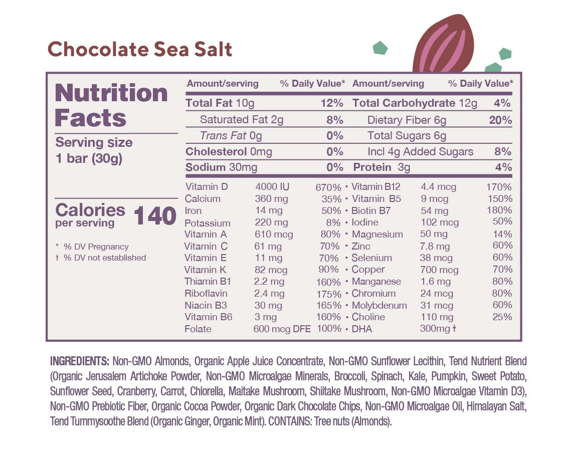 Protein - Requirements increase during pregnancy to support fetal growth, and Tend is the first prenatal to acknowledge this macronutrient. Further, protein enhances vitamin and mineral bioavailability and causes the gut to further upregulate nutrient absorption.
